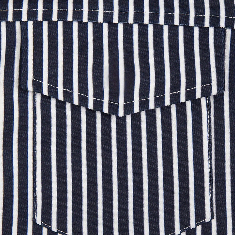 Women's Striped Print Casual Two-Piece Set – Button-Up Long Sleeve Jacket & Shorts with Slant Pockets, Summer Fashion Outfit